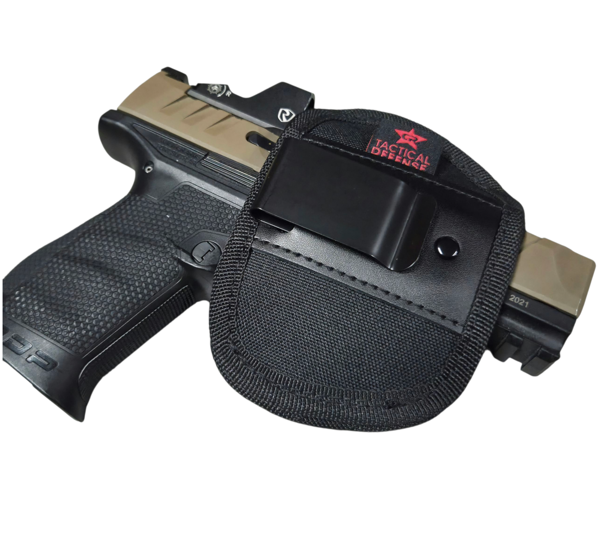 LARGE GUN HOLSTER DESIGNED FOR UNIVERSAL FIREARMS WITH GUN LIGHTS OR LASERS , DURABLE NYLON , STRONG TENSION CLIP, IWB , STANDARD BELT LOOPS FOR EXTRA SUPPORT FITS GUN LIGHTS LIKE OLIGHT ,NIGHTSTICK AND OTHERS WITH SIMILAR DIMENSIONS . CHECK OUT CAPCUSTOM'S YOUTUBE CHANNEL FOR FITMENT VIDEOS ON OTHER FIREARMS OR CONTACT US ON CRTACTICALDEFENSE: IG OR OTHER SOCIAL MEDIA PLATFORMS. Contact us first about holster fitment if your not sure about what size you need.